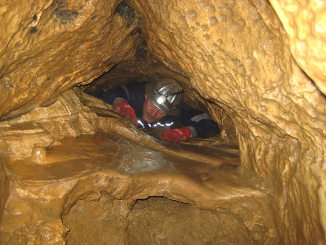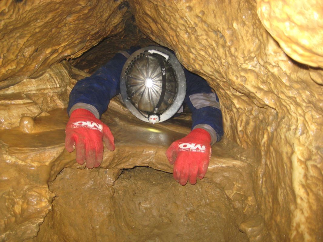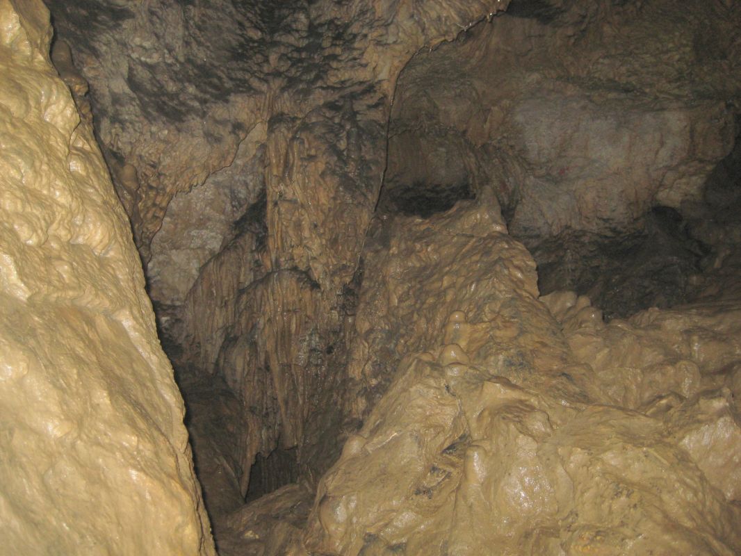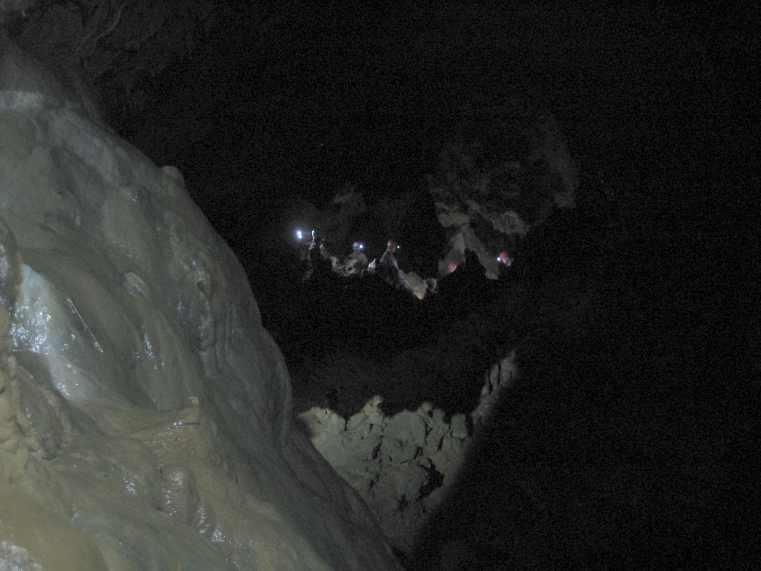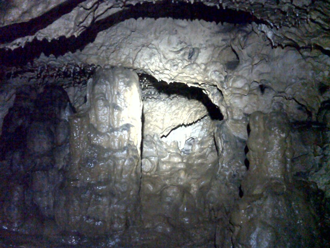 Sinter im Vorder- Hoehlengaenger im Hintergrund.