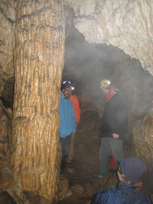 Teilgruppenbild mit imposanten Tropfstein.